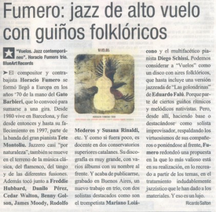 Publicado el 26/12/201310/07/2025 por BlueaArt Records Fumero: jazz de alto vuelo con guiños folklóricos (Ámbito Financiero) Compartir: Hacé click para compartir en Facebook (Se abre en una ventana nueva) Facebook Click to share on X (Se abre en una ventana nueva) X Navegación de entradasEntrada anterior: Bondades: 9 puntosSiguiente entrada: Vuelos, por Diego Mazzei para La Nación